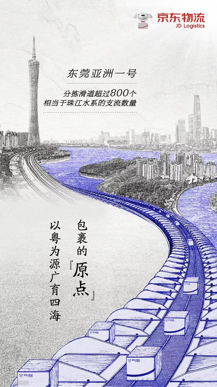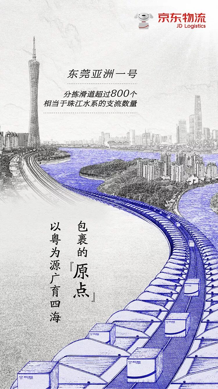 珠江又名粤江,是中国第二大河流,境内第三长河流,有大小支流774条,总长36000多公里,常年通航里程达1200公里,水运量仅次于长江,居全国第二位。而东莞亚洲一号拥有超过800个分拣滑道,几乎与珠江水系的支流数量相当,这也是东莞亚洲一号大幅提升货物中转效率,服务覆盖全国各大城市的重要保障。包裹的原点,以粤为源广育四海。