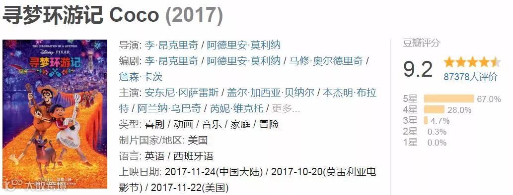 看看豆瓣上列出的这几个名字:可可夜总会(台)、玩转极乐园(港)、墨西哥亡灵节、亡灵节总动员……