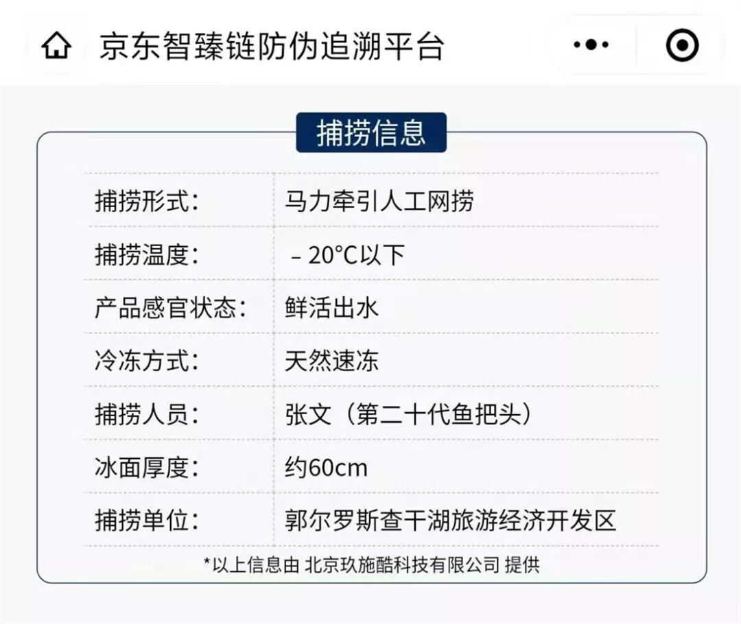 今年,为了解决食品安全追溯环节上的信任问题,让消费者吃的更放心,京东生鲜利用区块链产品溯源技术,实现了“一鱼一码”全流程可追溯,为查干湖鱼加上区块链的“保险”。