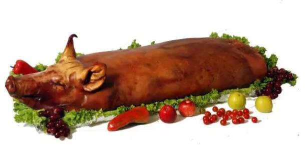 至少每两周一次,大批包办筵席的人从城里下来,带来好几百英尺帆布帐篷和无数彩灯,足以把盖茨比巨大的花园布置得像一棵圣诞树。自助餐桌上各色冷盘琳琅满目,一只只五香火腿周围摆满了五花八门的色拉、烤得金黄的乳猪和火腿。 (巫宁坤/译)