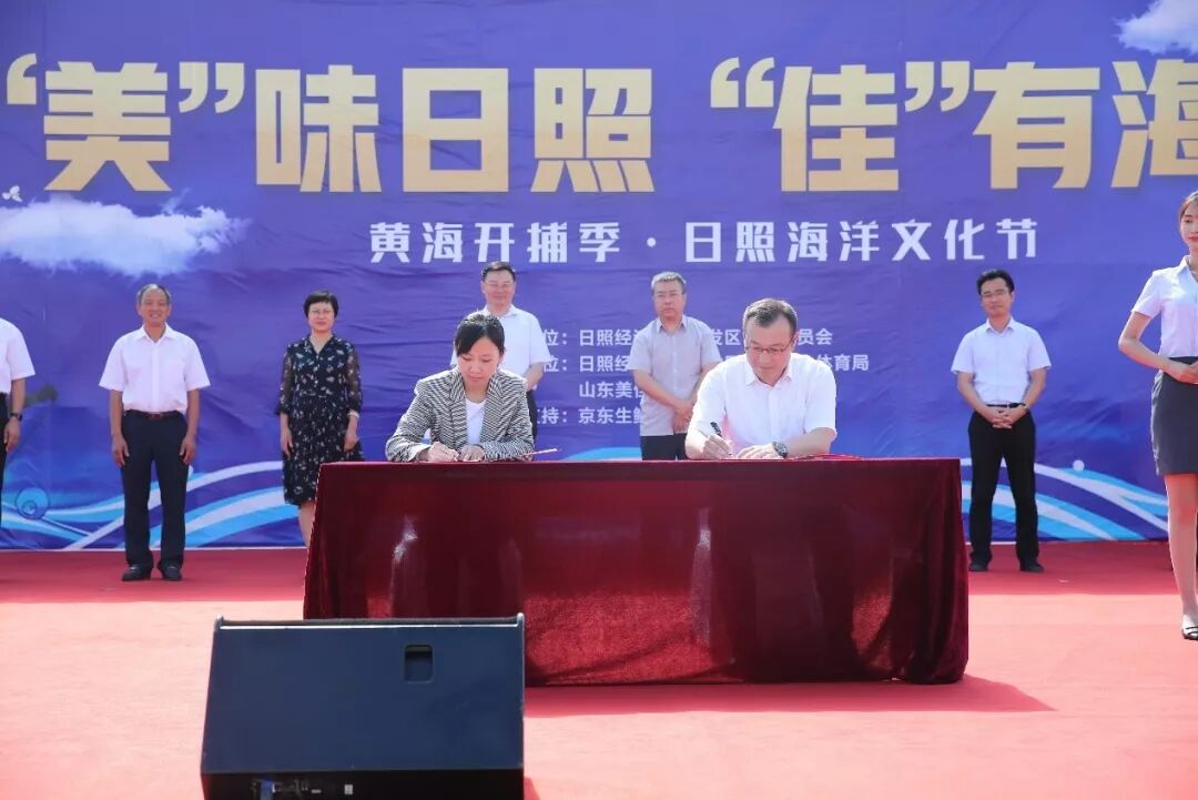 活动现场,京东生鲜与日照市经济开发区、山东美佳集团签署战略合作协议,充分整合各方优势,共同开发黄海特色海产品,推动区域企业品牌发展,为消费者带来放心的高品质生鲜消费体验。