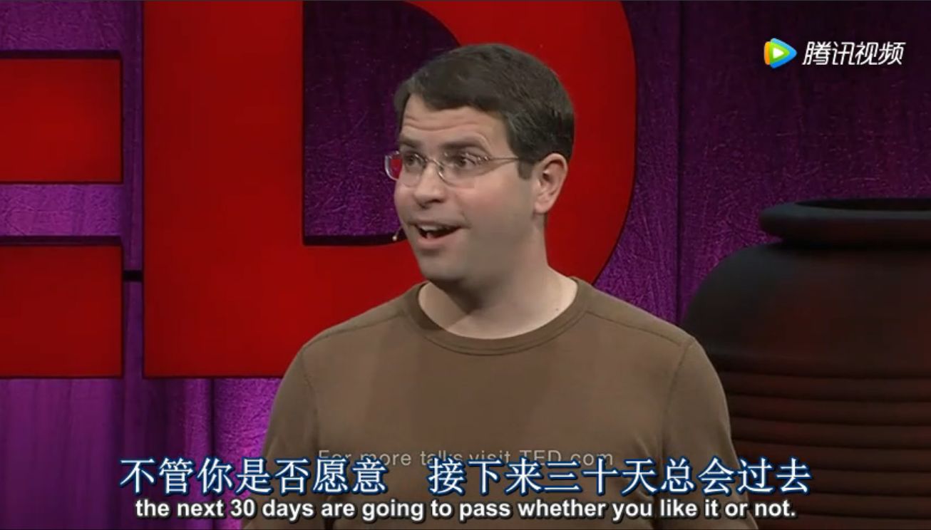 我想问大家:你们还在等什么呢?我向你们保证,不管你是否愿意,接下来三十天总会过去。为什么不考虑下你一直想做的事情呢?在接下来三十天尝试去做吧。