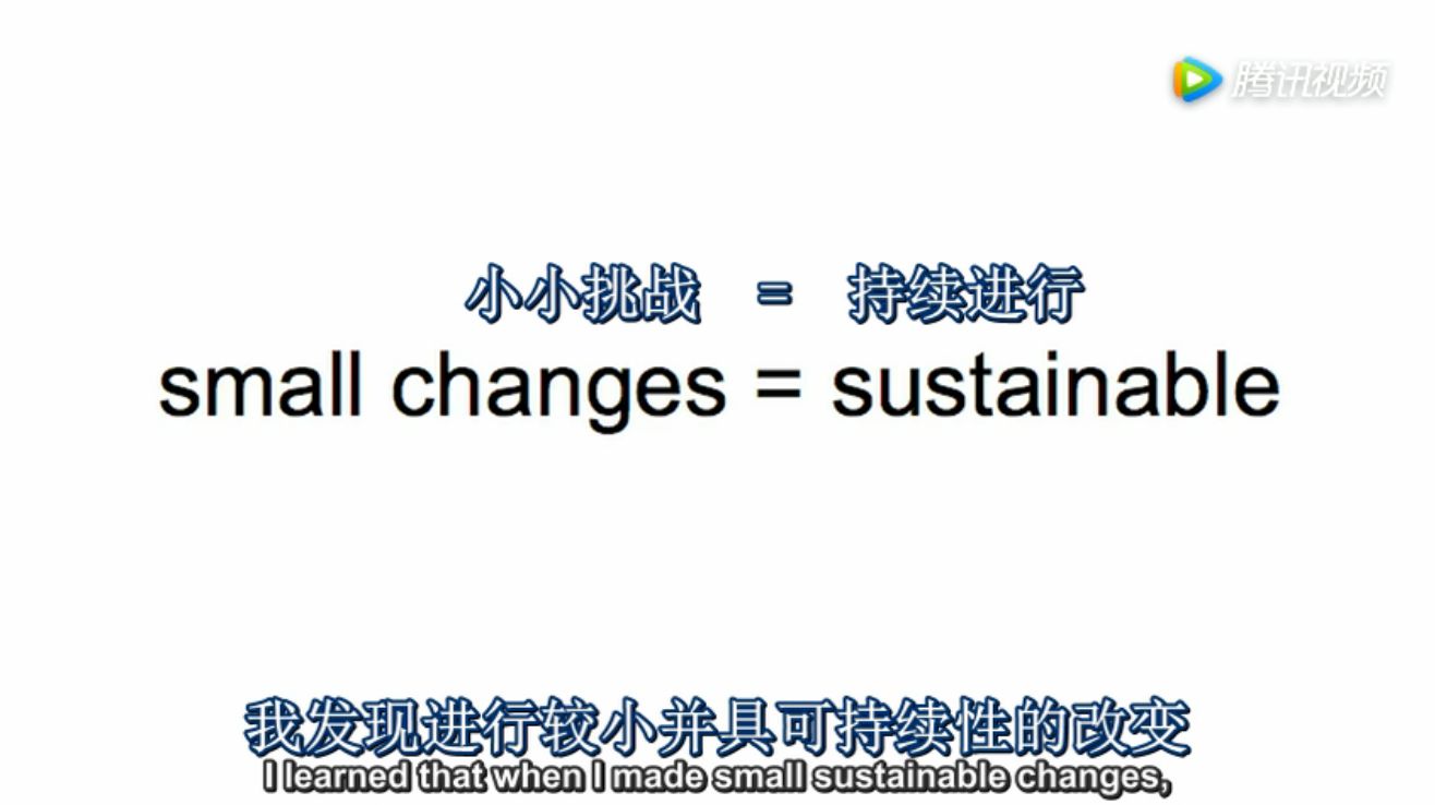 我发现进行较小并且可持续性的改变,做些我能一直进行下去的事,这些习惯就很有可能坚持下去。