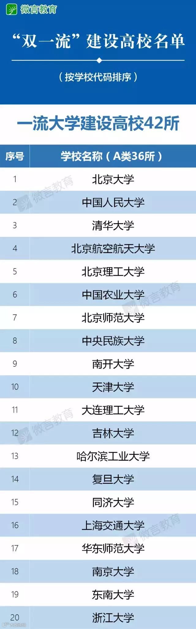 最后,附上世界一流大学和一流学科建设高校及建设学科名单。来看看你的学校在不在列!