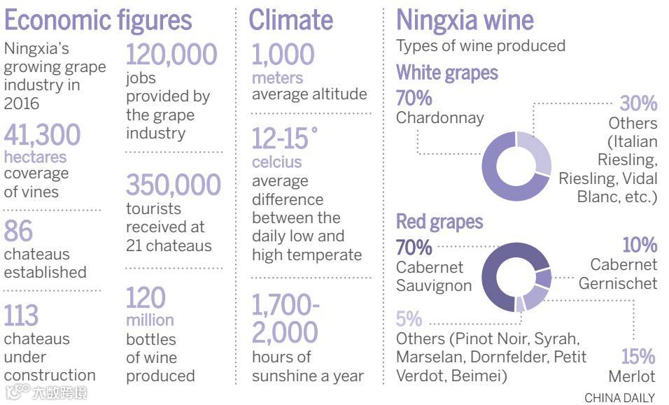 虽然当地酿酒历史悠久,但直到30多年前一家叫西夏王的企业才酿了第一瓶干红(dry red wine,糖分几乎都转换为酒精,每升酒残糖在4克以下)。