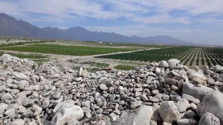 产区风土特点一是干(dry weather)!大陆性干旱半干旱气候,这儿年平均降水量只有150-240 mm(大概相当于一个洗脸盆那么深的水)。天啊,干燥得连害虫都嫌渴,懒得到这来搞破坏了。种水稻什么一类的庄稼,肯定是没戏了。而喜旱的葡萄感觉正好。