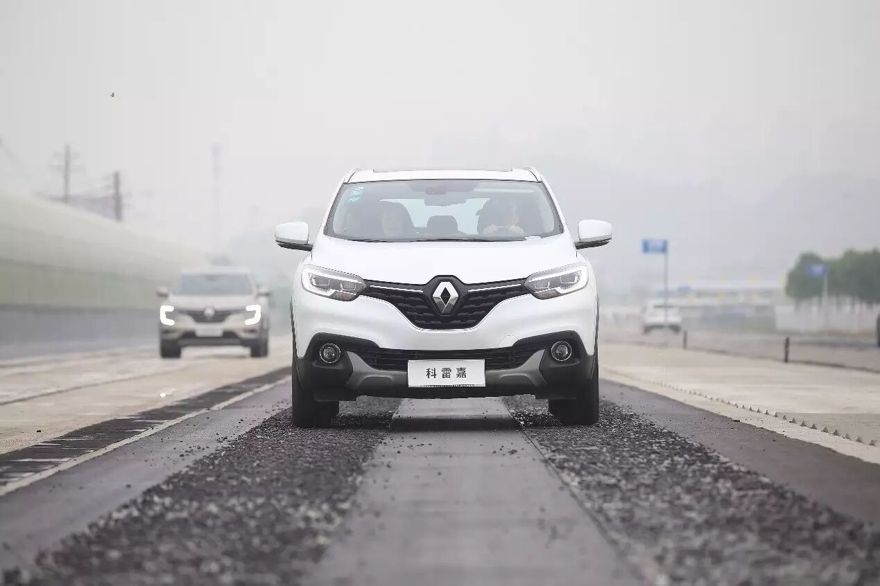 在测试车辆动力和制动性能的登坡测试道上,2017款科雷嘉、全新一代科雷傲的2.0L、2.5L自然吸气发动机(natural aspirated engine),以及新卡缤的1.2T发动机,均做到了从容应对,雷诺SUV家族全部平稳通过9°至30°斜坡道路;在测试车辆底盘强度冲击及整车通过性的缘石路测试中,得益于同级领先的可锁止智能全模式四驱系统(lockable intelligent full-mode all-wheel drive),以及超高的离地间隙(ground clearance),2017款科雷嘉及全新一代科雷傲轻松通过120-150毫米的缘石路。
