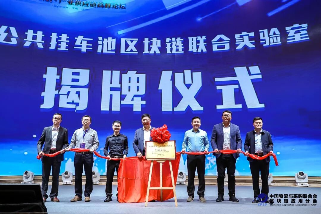 ▲ 公共挂车池区块链联合实验室揭牌仪式