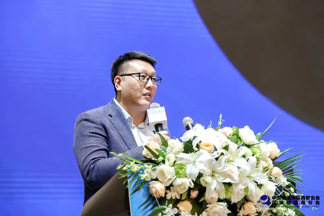 ▲ 京东物流研发部负责人程岩作为中物联区块链分会的当值会长发表致辞