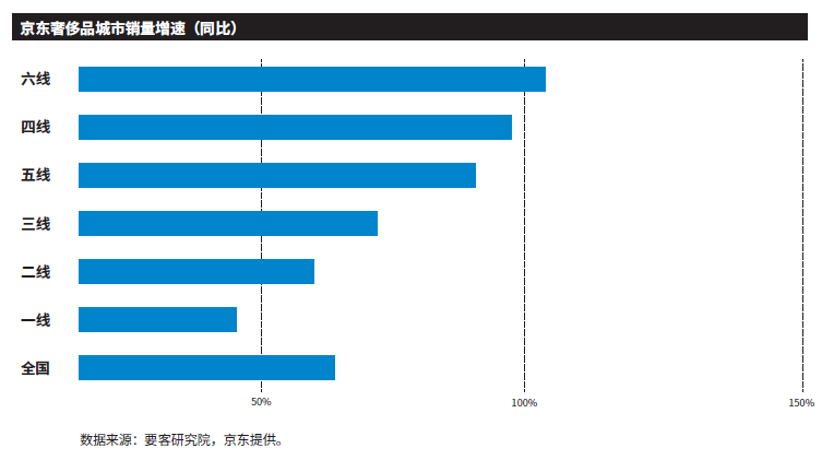 此外,要客研究院数据显示,虽然一二线城市贡献了超过60%的奢侈品线上消费额,但是三到六线城市在销量增速上遥遥领先,具有更大发展潜力,特别是奢侈品牌没有开设门店的地区,空间巨大。
