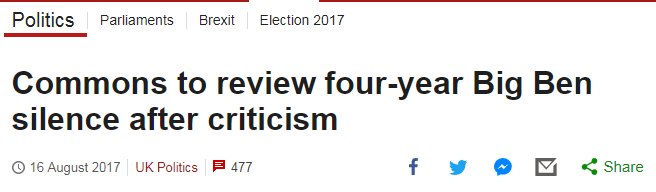 各方批评之后,下议院将重审大本钟4年静音计划