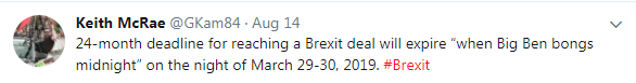 Keith McRae:两年的脱欧计划将于2019年3月29日凌晨,即大本钟下次鸣钟时失效