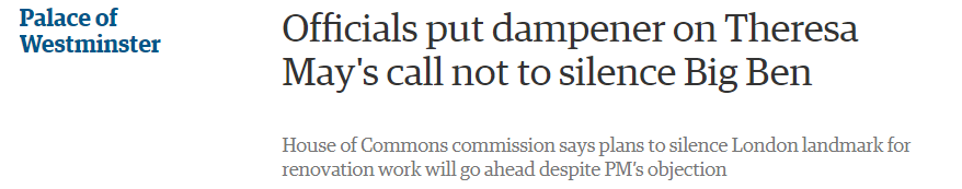 议会对特蕾莎·梅反对大本钟静音的言论进行回击