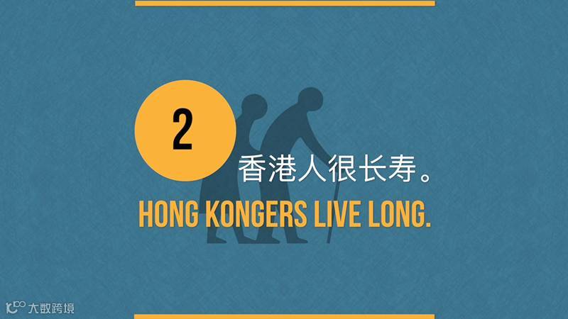 香港人寿命很长。根据日本厚生劳动省的数据,香港的男性与女性的人居寿命居世界首位。男性居民平均寿命81岁,女性则高达87岁。