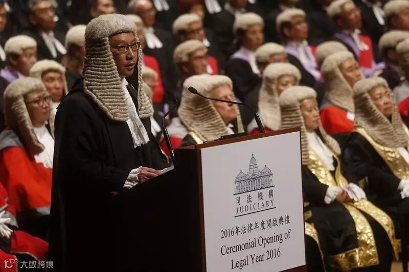 图为香港第三任律政司司长袁国强在2016年的法律年开启仪式上致辞。