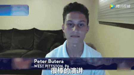 这个18岁的小哥叫Peter Butera,已经考上了维拉诺瓦大学(Villanova University ),他被选为毕业生代表发表告别演讲(valedictorian [,vælidik'tɔ:riən])。
