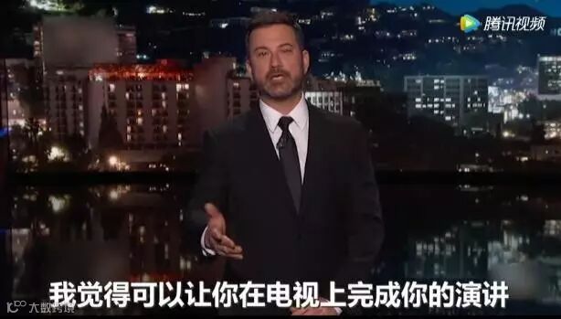 Kimmel说:“既然学校不让你在毕业典礼上说完你的演讲,我觉得让你在电视上把它讲完也很好。”