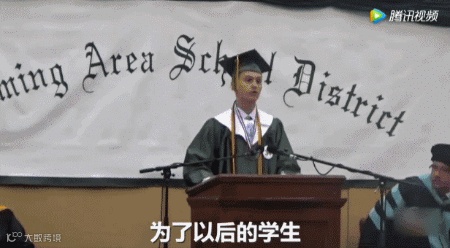 因为最终定义我们人生的,不是我们作为怀俄明区高中生或体育生所取得的成绩,而是我们作为学校校友在将来能做的事情。我希望在座的每一位同学,包括我自己,都能立足全球,做一番不起的事,获得真正的快乐和成功。最后,感谢你们今天来参加这个重要的典礼。