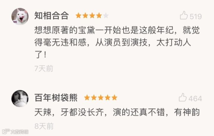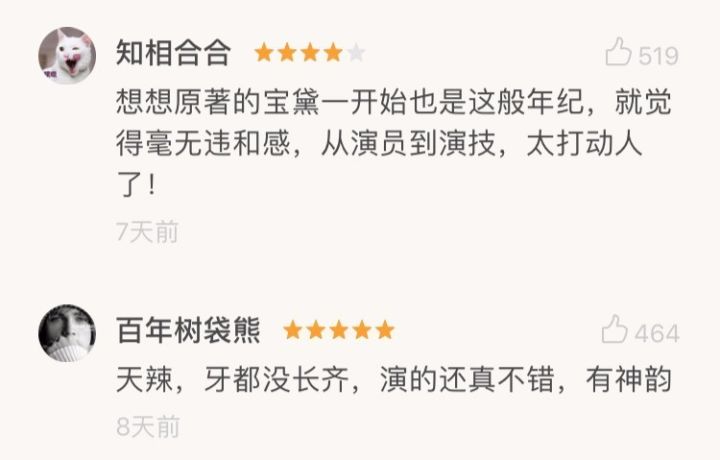 看看评论区,“神选角”、“戏精”、“牙都没长齐,演得真不错!”……高赞评论也是一水儿的好评。