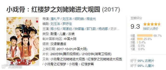 但令人意外的是,这部《小戏骨:红楼梦之刘姥姥进大观园》却获得了网友近乎一致的好评,豆瓣评分高达9.3。