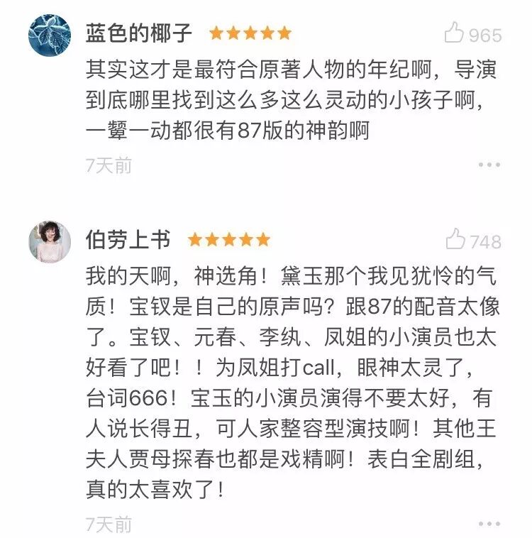 正如人民日报微博评论的:这些00后,不折不扣的后起之秀,用实力验证了后生可畏。他们是向87版《红楼梦》致敬,也收获了致敬。不捧杀,更不棒杀,愿这群孩子演技更上层楼,带给世人更多惊喜。