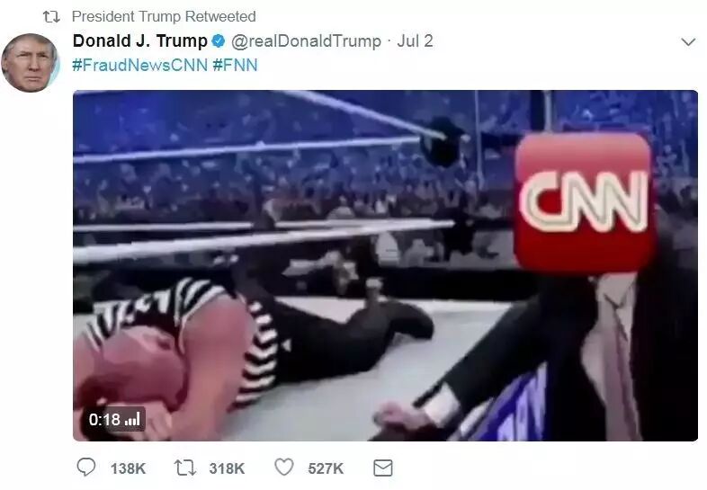 在特朗普发布的疯狂扭打CNN的推特中,他预言了自己的灭亡