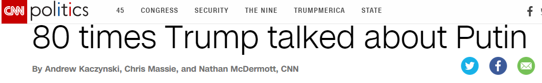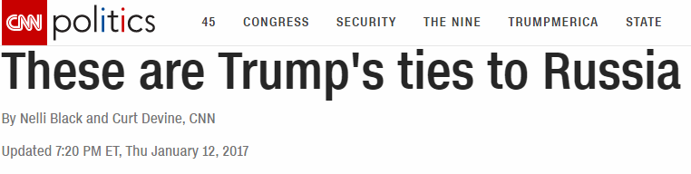 在特朗普赢得大选之后,不少媒体就拿特朗普和俄罗斯俄关系说事儿,说特朗普“通俄”。CNN就是这些媒体里的“排头兵”。