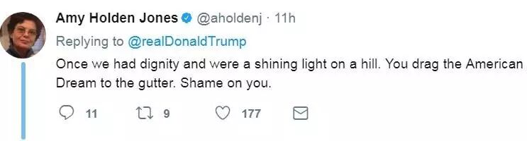 我们曾拥有尊严,曾是山顶那束耀眼的光芒。你却把美国梦拽入阴沟。可耻。