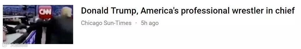 美国总统特朗普和媒体的宿仇再度升级。他在推特上发布了一个恶搞视频,视频显示,在摔跤场外,他本人正把一个西装男子扑倒在地,并反复击打对方,而该男子的脸上则贴着CNN的标志。