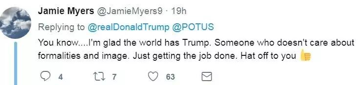 我很高兴这个世界还有特朗普,他不拘礼节,无所谓形象,只想着干好自己的事。向你致敬!