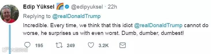 特朗普立刻发推特回应了此事。