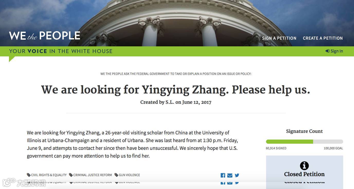 章莹颖案白宫请愿书