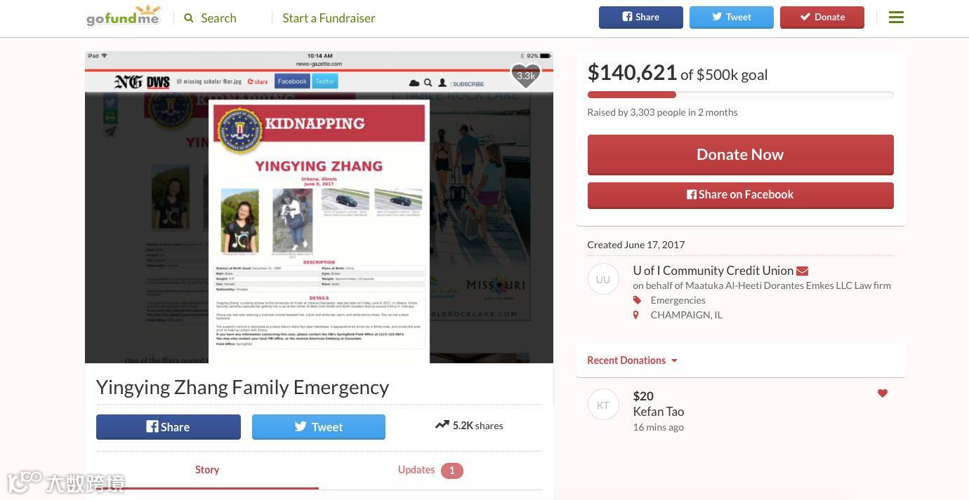 GoFundMe捐款页面