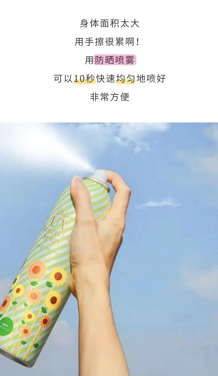 及时补涂,防晒喷雾❄️最方便了!而且想要在密不透风的紫外线中全副武装,唯有防晒喷雾是正解!人手一瓶,夏天必需品之一!