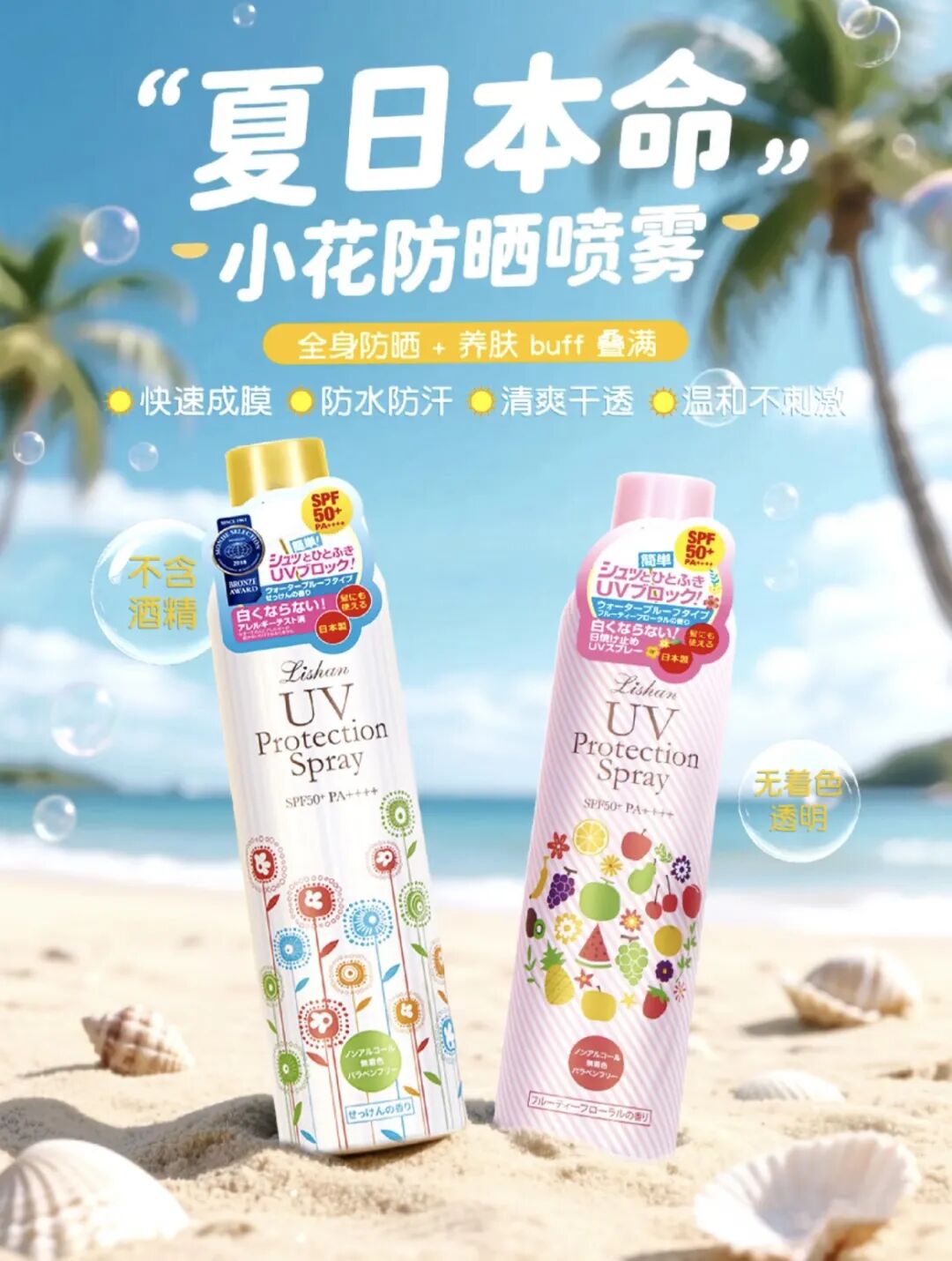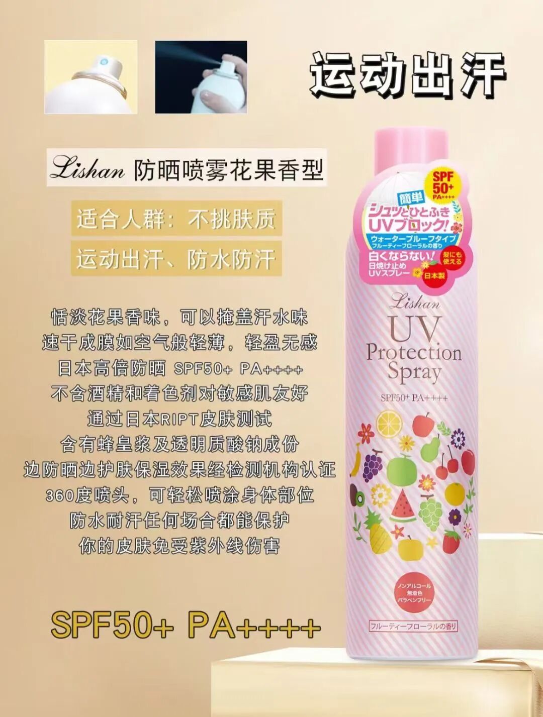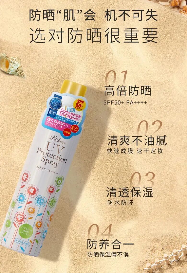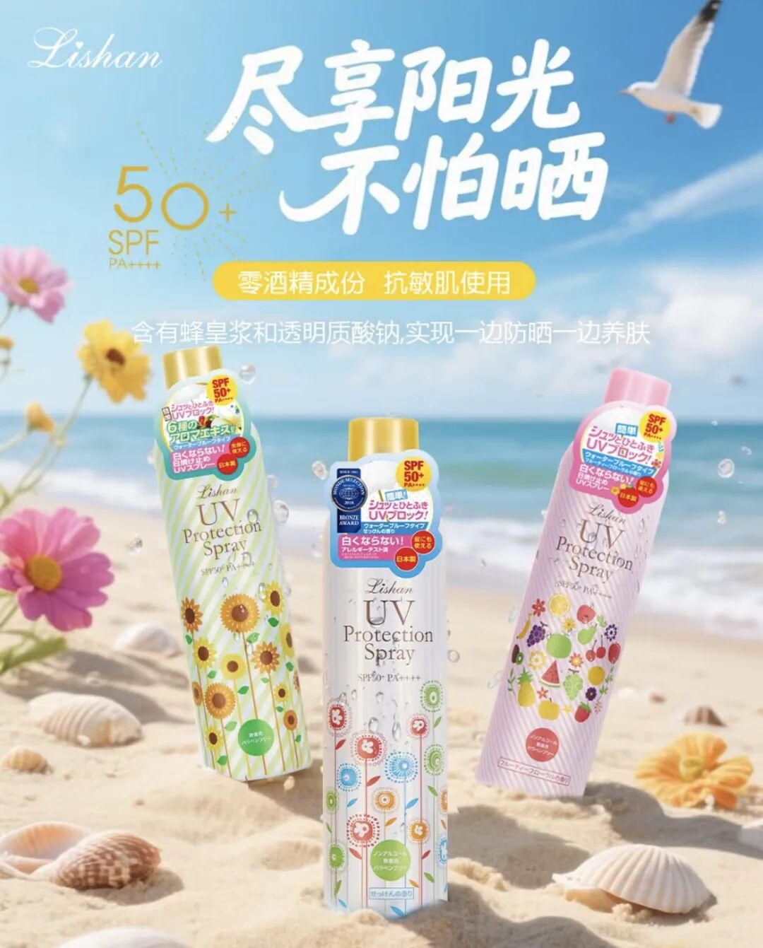 日本Lishan防晒喷雾——这瓶“会呼吸”的防晒黑科技,用SPF50+ PA++++的硬核防护力,3秒成膜、隐形不粘腻,连明星化妆师都直呼“补涂神器”!