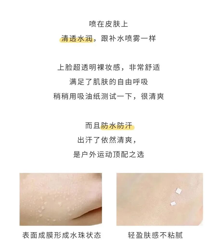:喷后3秒成膜,轻薄到仿佛没涂过; - 降温黑科技