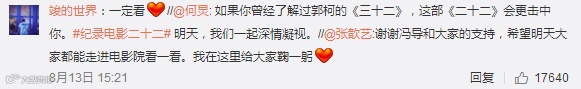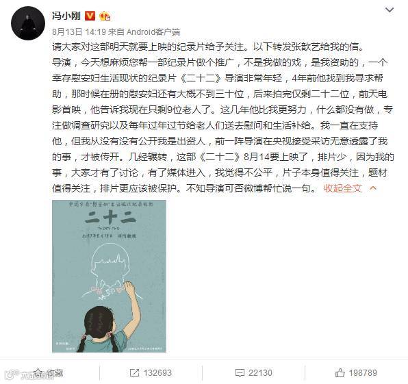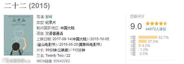 8月14日,纪录电影《二十二》全国公映。