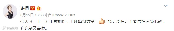 很多人成了“自来水”,主动向身边人推荐《二十二》,明星们也主动在微博上帮助宣传,越来越多的人走进了电影院。