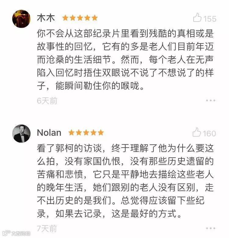 他没有使用过多的电影手法,也没有加入太多史实,只希望能看到这些老人最真实的一面。