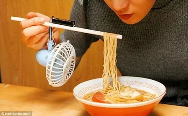 In a hurry to eat dinner? A fan you can attach to your chopsticks will make sure you don't risk burning your tongue