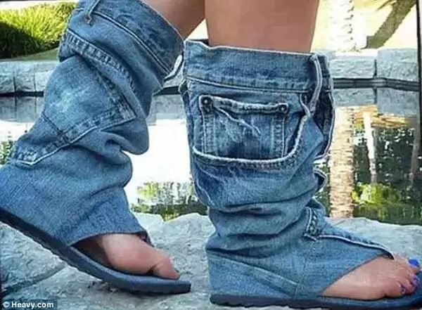 在牛仔时装界这个主意不是太高明:令人惊讶的是这种牛仔拖鞋没有出现在高级时装的T台上。