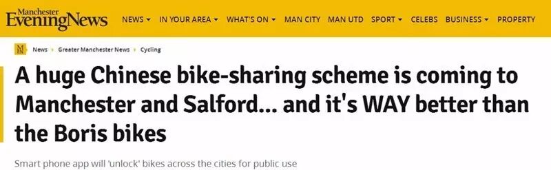 《曼彻斯特晚报》:摩拜完爆“鲍里斯单车”