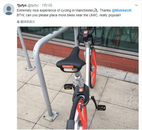 曼城人一觉醒来,发现中国来的共享单车“刷”了街,也纷纷在社交媒体上开启“炫车”模式。