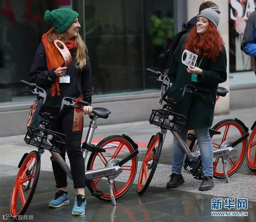 中国最大的共享单车运营商摩拜在英国雨城曼彻斯特投放1000辆橙色轮子的自行车,这也是该公司在亚洲地区以外的初次尝试。