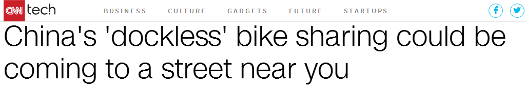 美国有线电视新闻网(CNN)的目光一直盯着中国共享单车的发展和走势,在摩拜登陆曼彻斯特后,发表一长篇文章报道最新情况,言语之间充满赞赏。