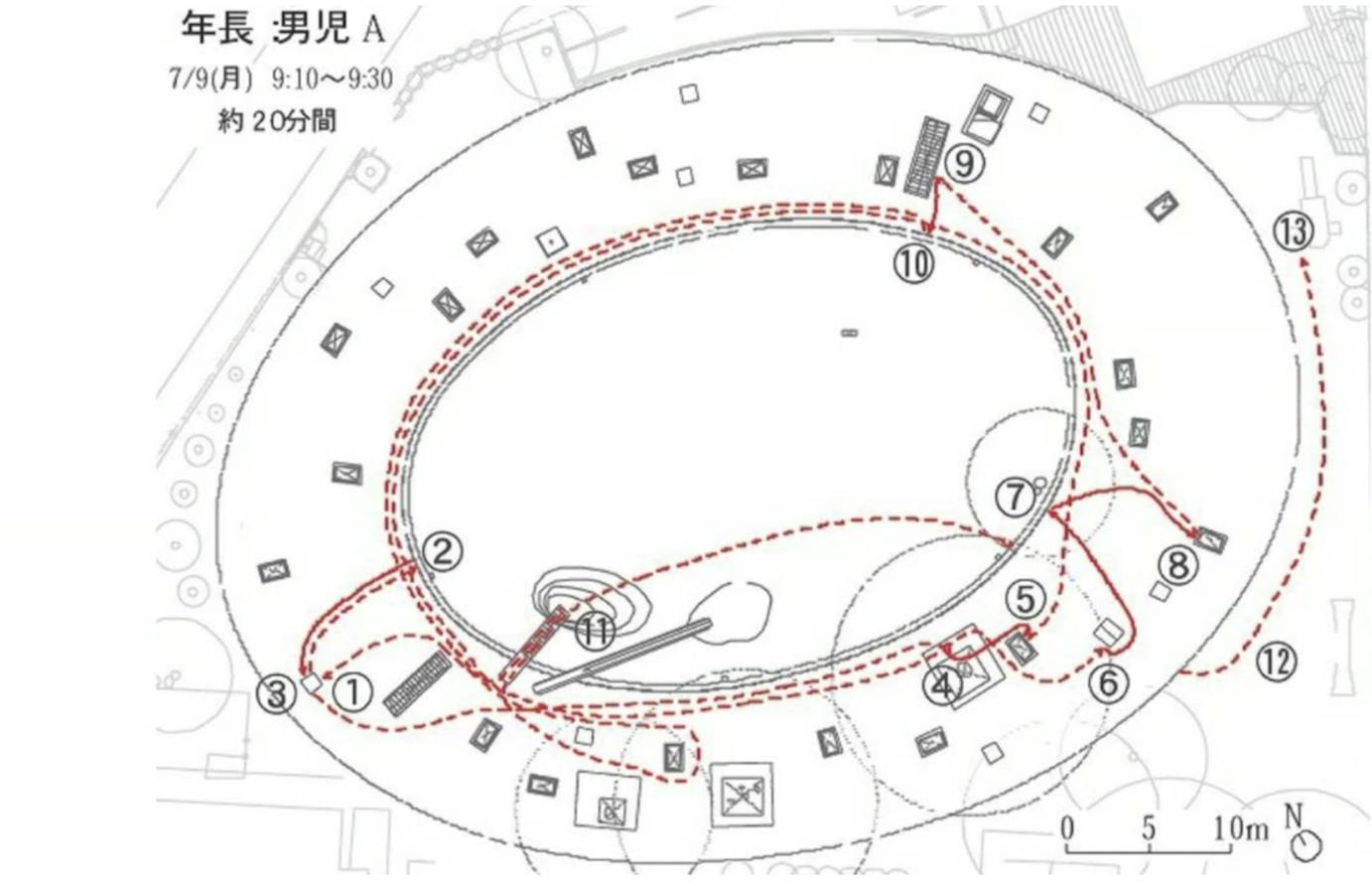 首先,他发现了这些孩子的共性——喜欢绕圈转,这成了他的设计灵感来源。