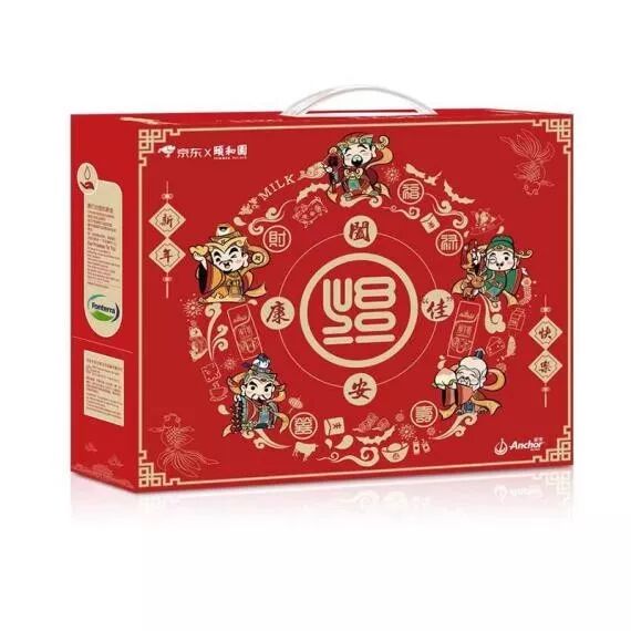 1月7日,京东超市联合颐和园IP定制产品 “皇家年货礼盒”正式以主题页形式在京东平台亮相。礼盒联合玛氏、福临门、安佳、亿滋、盼盼、桂格、乐事、三只松鼠等知名食品品牌,各家的明星产品搭配萌力十足的颐和园“福禄寿喜财天团”设计,为京东的消费者带去了扑面而来的浓浓年味儿。