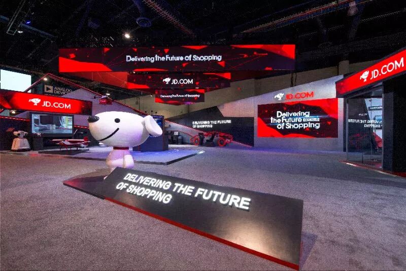 这就是京东的展台啦,当然这还只是冰山一角,更多的黑科技还在里面。能够看到“Delivering The Future Of Shopping”是今年京东参展的主题。对于未来零售,京东希望将这十几年积累的零售科技全面开放,为合作伙伴提供组件化、模块化的解决方案。而消费者也将进一步体验到无界零售带来的更加无缝、流畅、便捷的体验。
