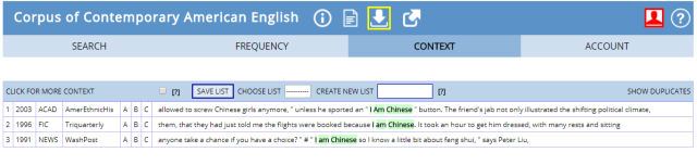 ☞ 关于语料库的使用,这里可以举一个简单的例子。“我是中国人”用英文应该怎么说?是 I am Chinese? 还是 I am a Chinese?