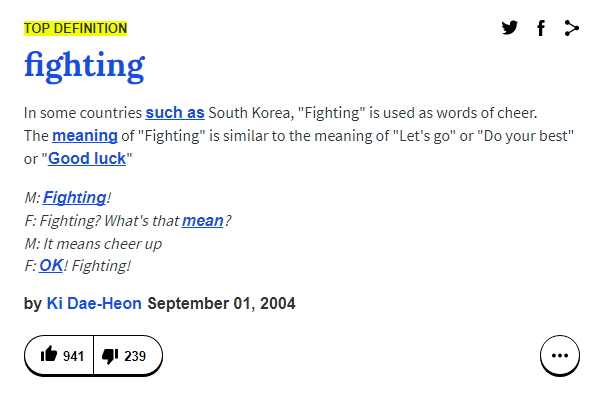 尝试搜索”fighting cheer up” 看看两者的联系,在搜索结果中有Urban Dictionary给出的解释:
